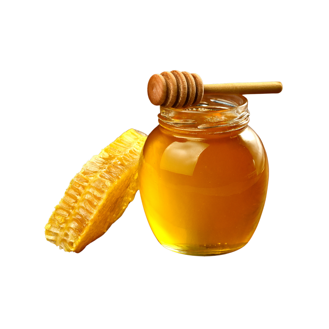 Afkomstig van lokale Nederlandse bijenkasten. Honing werkt als een bevochtiger en trekt vocht naar de huid. Het heeft ook natuurlijke verzachtende en antimicrobiële eigenschappen.